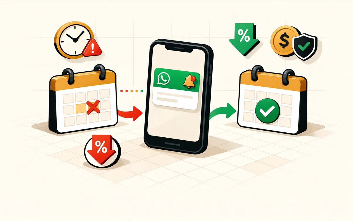 A forma mais eficaz de reduzir no-shows é enviar lembretes automáticos via WhatsApp. O WhatsApp tem taxa de abertura de 98% no Brasil — praticamente todo mundo lê as mensagens.